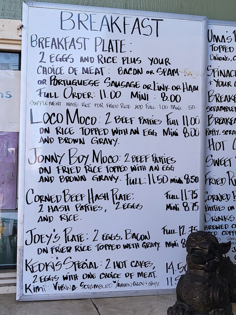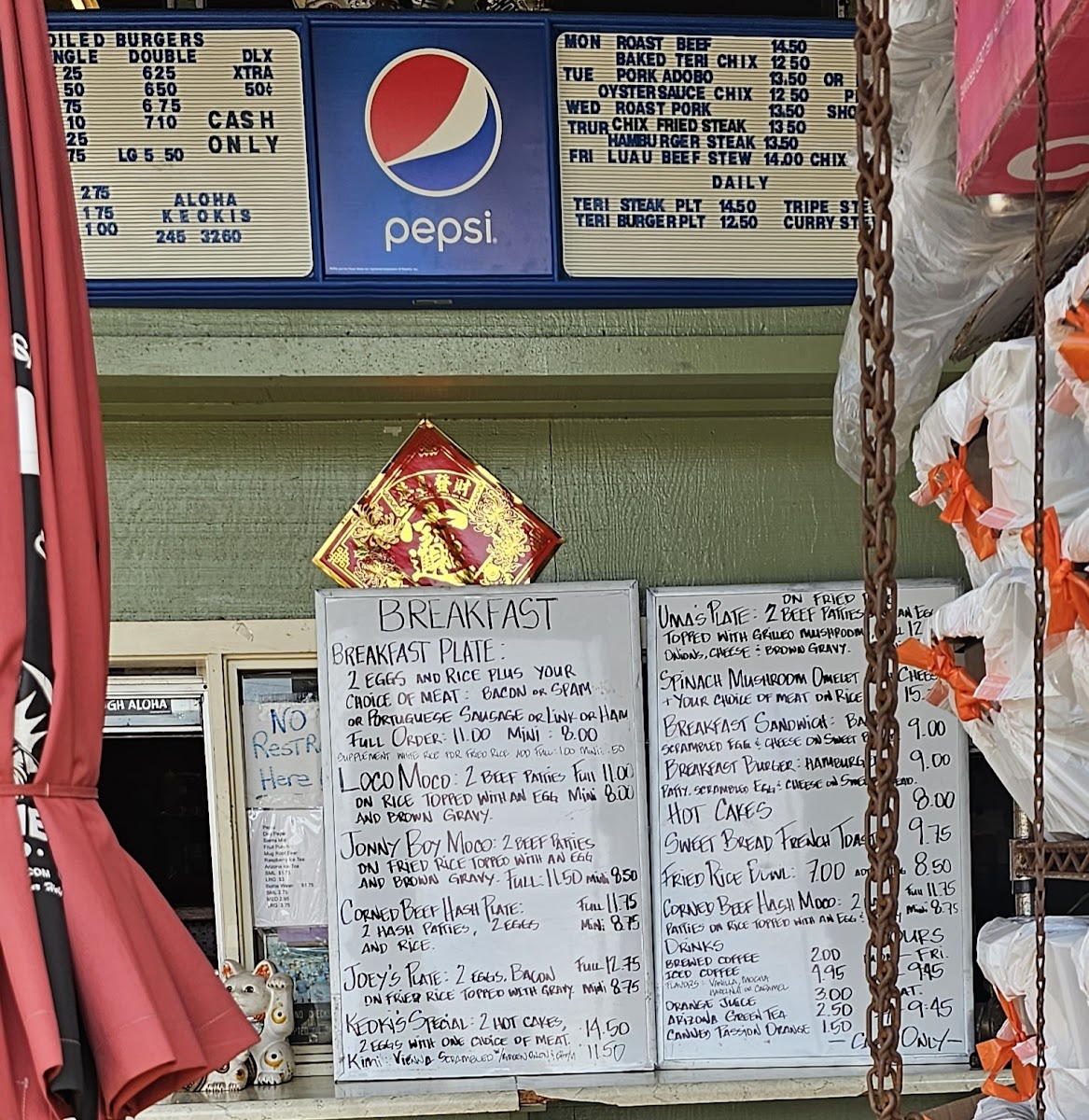 Welcome to Keoki's, a local gem nestled in Lihue, Hawaii, where authentic Aloha spirit meets homestyle cooking. Since 1978, this cash-only eatery has delighted locals and visitors alike with generous portions and flavorful dishes that reflect the essence of Hawaiian cuisine.